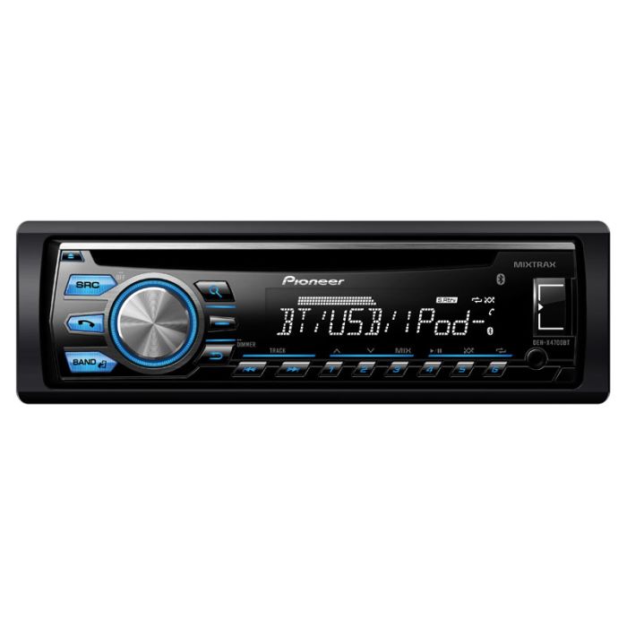 The DEH-X4700BT CD receiver features Pioneer’s MIXTRAX technology, built-in Bluetooth for hands-free calling and audio streaming, USB direct control of an iPod or iPhone, USB access to music on Android devices (4.0 or later), and Pandora radio ready for both iPhone and Android. In addition to an updated cosmetic design, model year 2014 CD receivers include updated feature enhancements like Bluetooth USB pairing and Siri Eyes Free voice recognition compatiblity (for iPhone 4s and later).
